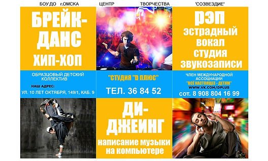Мы приглашаем творческие натуры на занятия по киномастерству, актерскому мастерству, вокалу, диджеингу, фотографии и созданию видеоблогов. Сценические навыки обогатят вашу жизнь - даже если вы не думаете о кинокарьере. Поставленный голос, умение эмоционально окрашивать свою речь - без этого немыслимо любое публичное выступление, от тоста до защиты бизнес-проекта. Пение же, помимо наслаждения музыкой, имеет очевидный оздоровительный эффект: тренирует диафрагму, знакомит с дыхательными упражнениями. А если вы решитесь на участие в музыкальных конкурсах, то вместе с голосом вам достанутся незабываемые воспоминания! Впрочем, приходите - мы с удовольствием поведаем вам о наших направлениях и их пользе! А может быть, вы станете профессиональным творцом? Это будет интересный и приятный поворот событий!